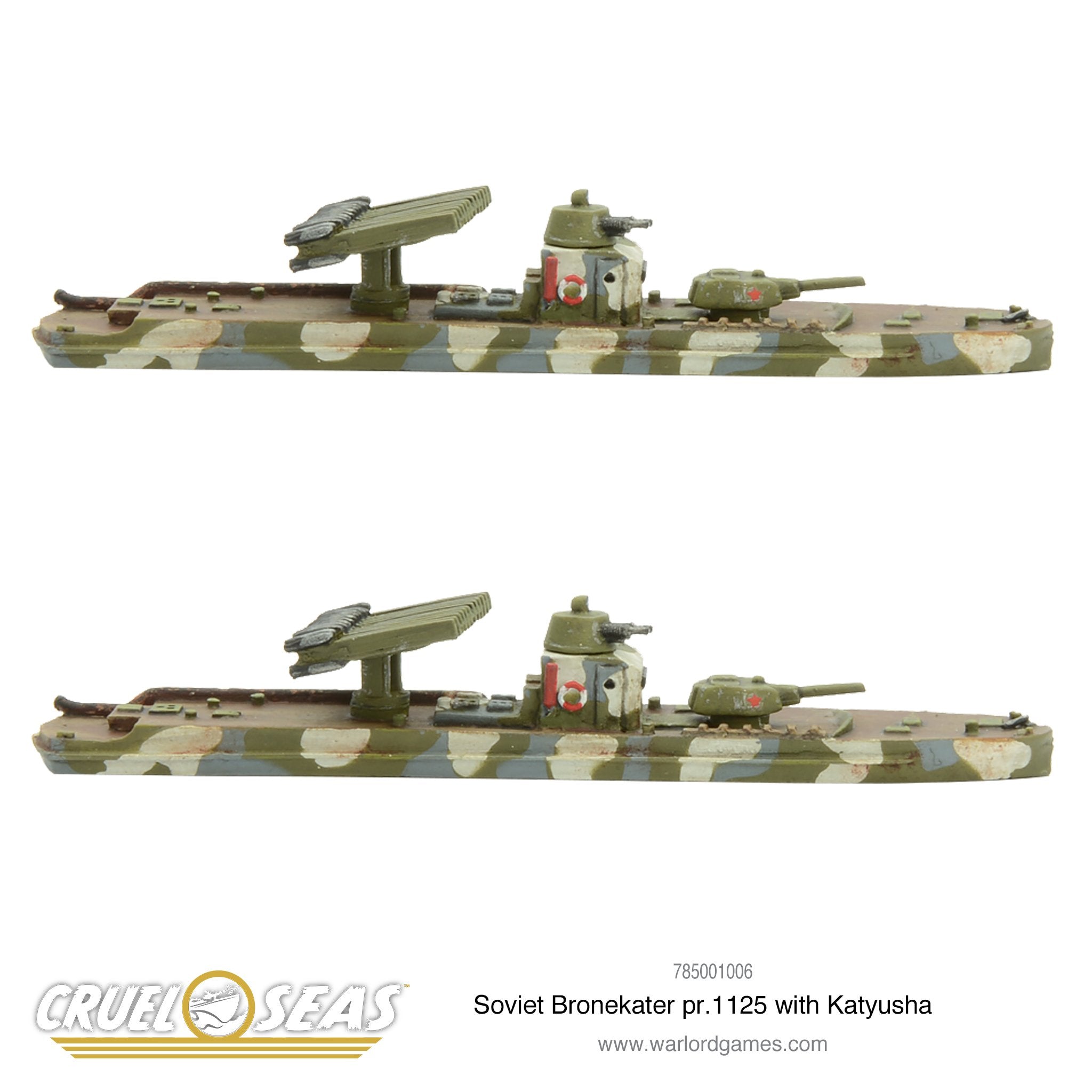 The Soviet Bronekater pr.1125 with Katyusha comes in a pack of two to boost your Soviet Navy coastal forces.