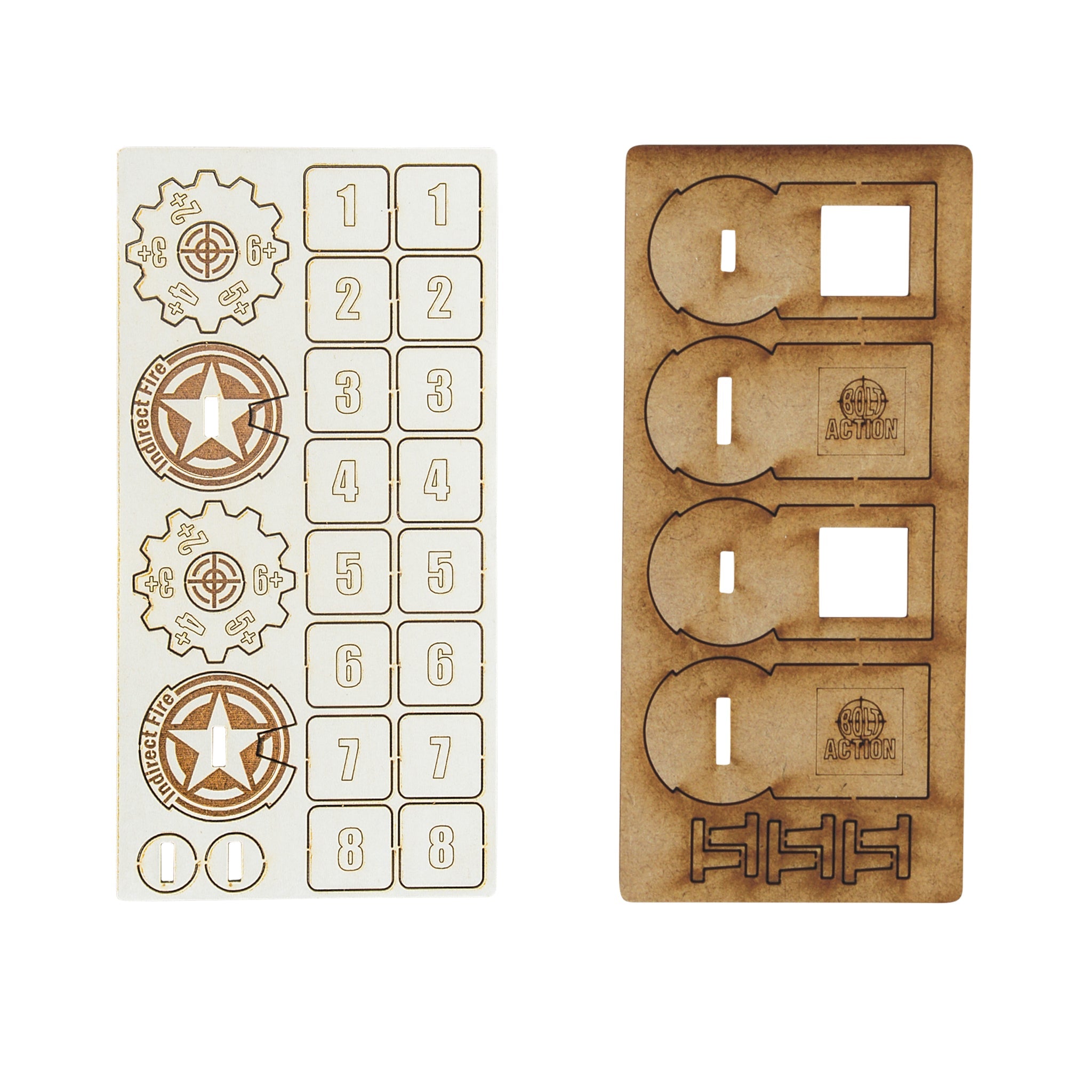 With indirect fire more prevalent than ever on the Bolt Action tabletop, you’ll want to make keep track of which of your weapons are ranging in on the enemy. These markers ensure you know who’s shooting at whom, and what they need to hit next turn, eliminating confusion and letting you mark your targets with confidence.
