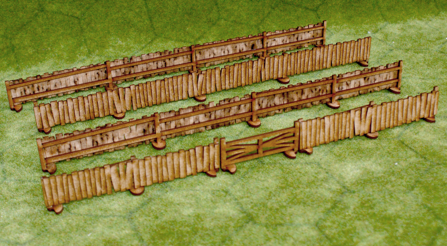 These panelled fences can be seen in any 1800s village right up to modern or even post-apocalyptic cities. Great for any wargames table or diorama.