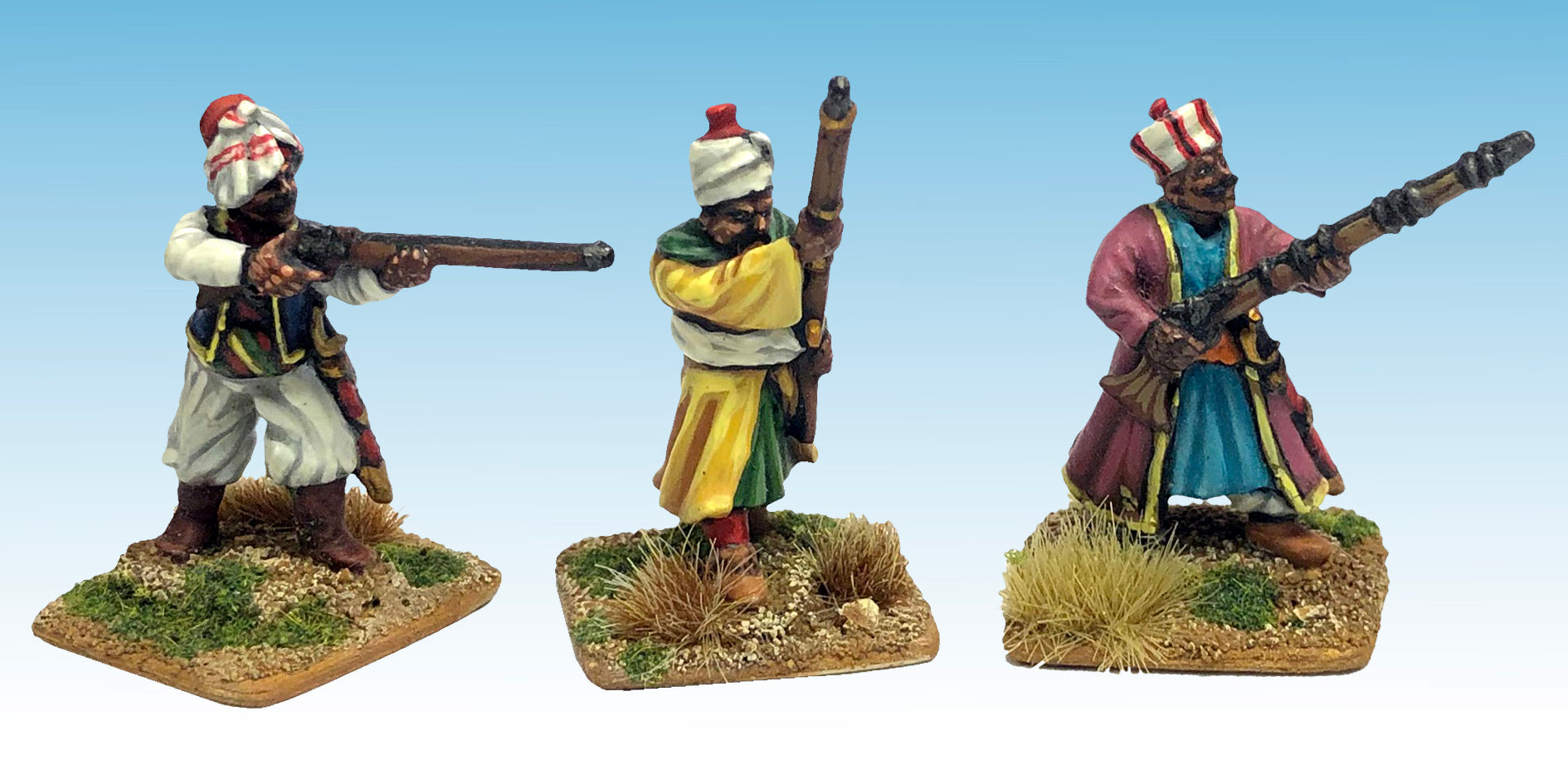This blister contains six unpainted figures, two each of three poses shown. You will be supplied with six seperate heads chosen at random from four possible choices