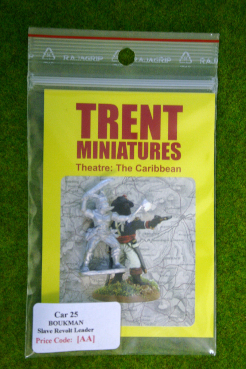 The pack contains one figure representing Dutty Boukman, or Boukman Dutty, the first leader of the August 1791 enslaved people revolution in St. Domingue. Boukman had a large and powerful physique and was reputed to be a Voodoo priest. He was killed in battle in November 1791.