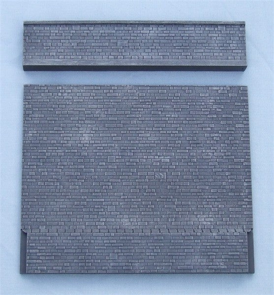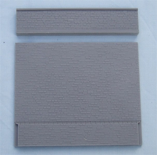 Resin cast stone retaining wall with separate parapet. Dimensions: width 110mm, height 91mm and parapet 23mmCan be used with 4/018 buttresses to form extended lengths of retaining wall. See 5/054 for multiple purchase deal.