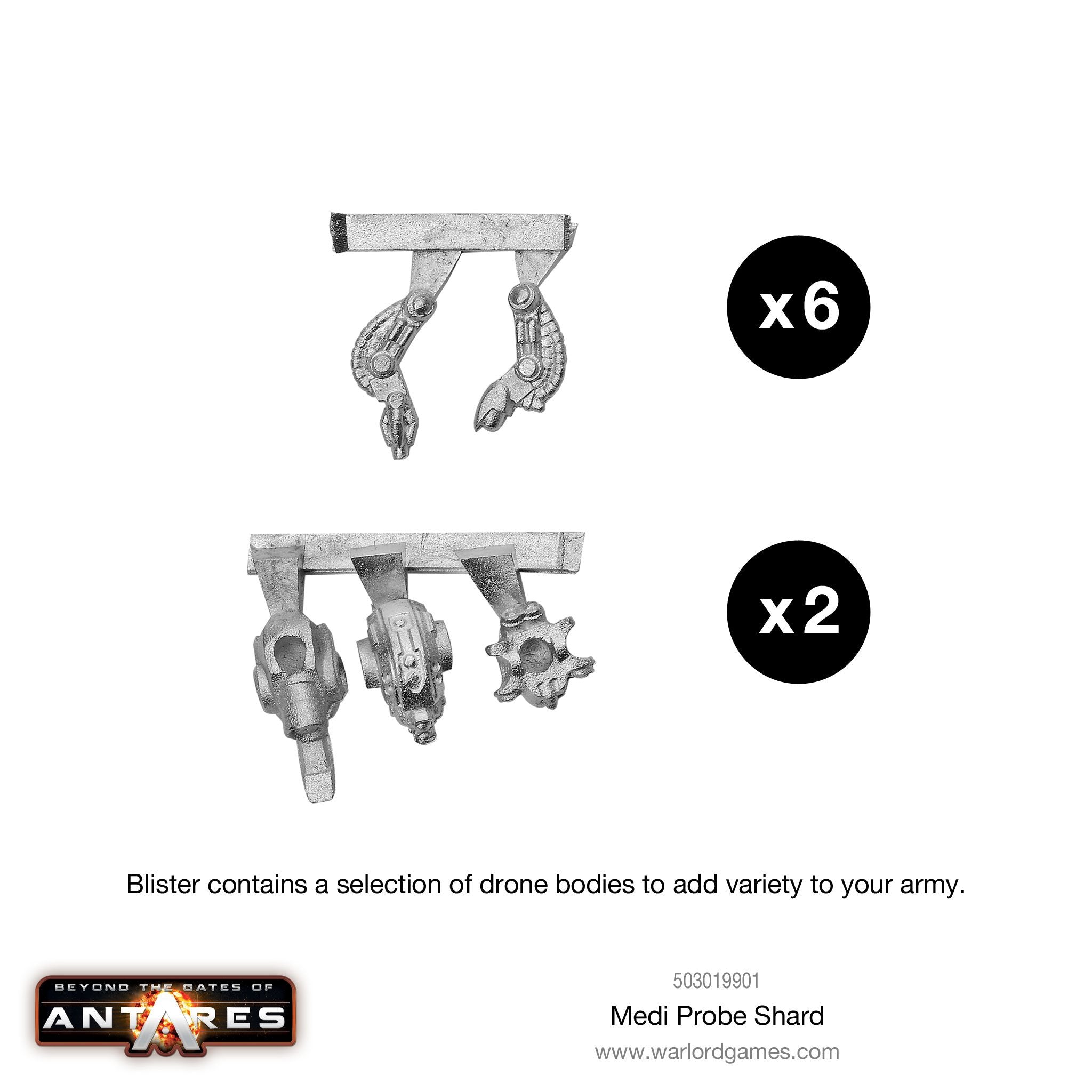 A medi‐probe is a medi‐drone operating as part of a probe shard rather than as a buddy drone. A medi‐drone is a mobile medical drone that is able to administer immediate care to the wounded - an essential addition to a command group to maintain it's combat abilities in a firefight.